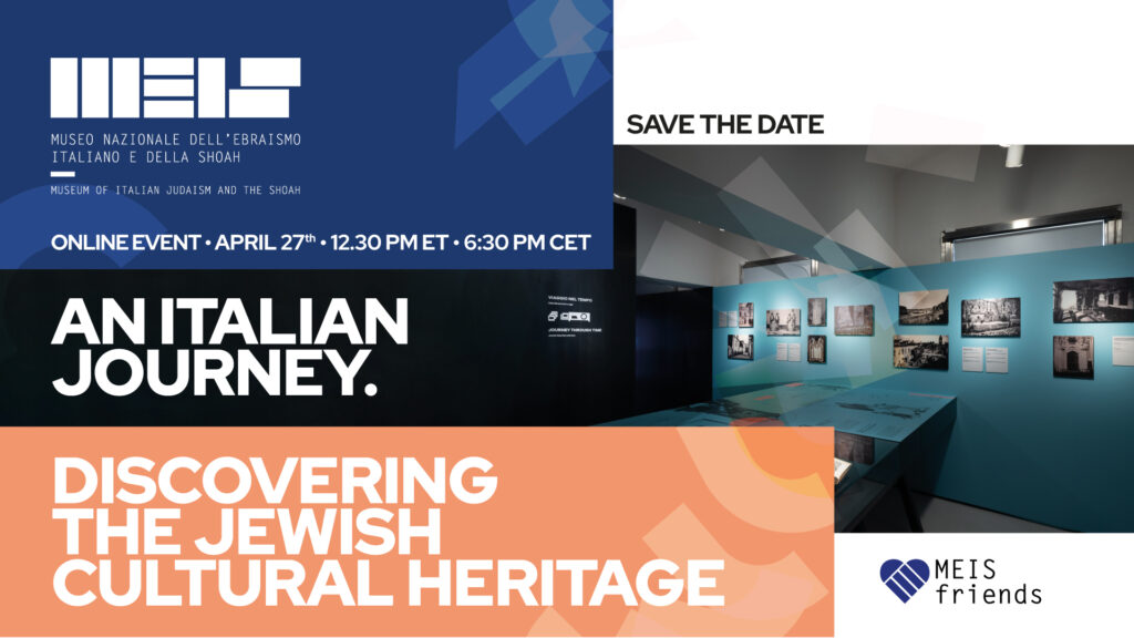 Seguiteci online su Zoom lunedì 27 aprile alle 18:30 (CET)/12.30 (ET): Sharon Reichel, co-curatrice insieme a Valeria Rainoldi della mostra “Viaggio in Italia. Alla scoperta del patrimonio cultuale ebraico” ci presenterà l’allestimento svelandone tutti i segreti.