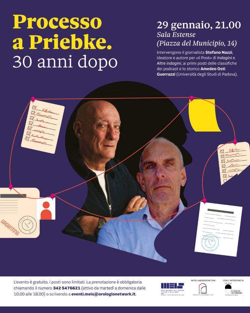 Intervengono Stefano Nazzi, giornalista e celebre voce del podcast de Il Post “Indagini” e “Altre indagini” e lo storico Amedeo Osti Guerrazzi (Università degli studi di Padova). L’evento ha il patrocinio del Comune di Ferrara ed è realizzato in collaborazione con l’Istituto di Storia Contemporanea di Ferrara.