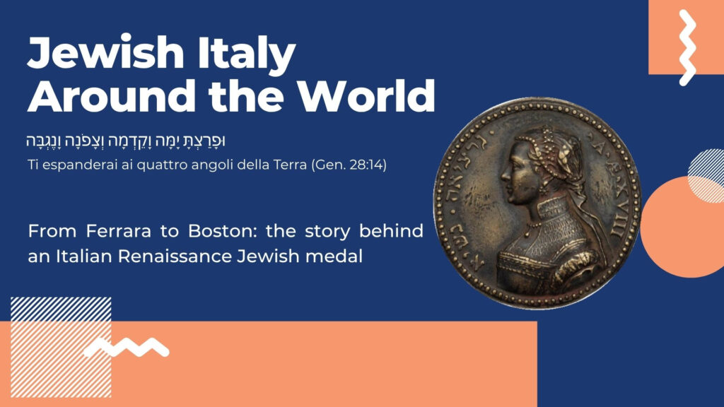 Chi era questa donna? E perché fu realizzata una medaglia con il suo volto? Durante il suo intervento, Simona Di Nepi (Charles and Lynn Schusterman Curator of Judaica, Museum of Fine Arts, Boston) ricostruirà la storia dell’oggetto e della sua protagonista, inserendola nel più ampio contesto degli ebrei sefarditi vissuti nell’Italia del XVI secolo.